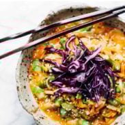 Source notes: This recipe was previously titled “Bangkok Coconut Curry Noodle Bowls” but was updated in August 2021 to better reflect and respect the cultural origins from which this dish came from. This is a Thai-inspired curry bowl that uses red curry paste, coconut milk, fresh aromatics, and herbs, which is traditionally how red Thai curry is made. It is delicious, salty, spicy, fresh, and we hope you love it as much as we do!