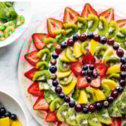 This fruit pizza was originally published back in 2012, and we’ve updated the recipe and pictures to reflect the new (and improved) recipe. We recommend using this recipe, but if you are looking to make the older version, you can find a printable version here.
