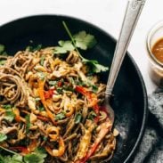 I wanted to love this, but my soba noodles turned out too mushy and it ruined it! Next time, I’ll probably just use regular pasta noodles. Everything else was divine, especially the sauce!